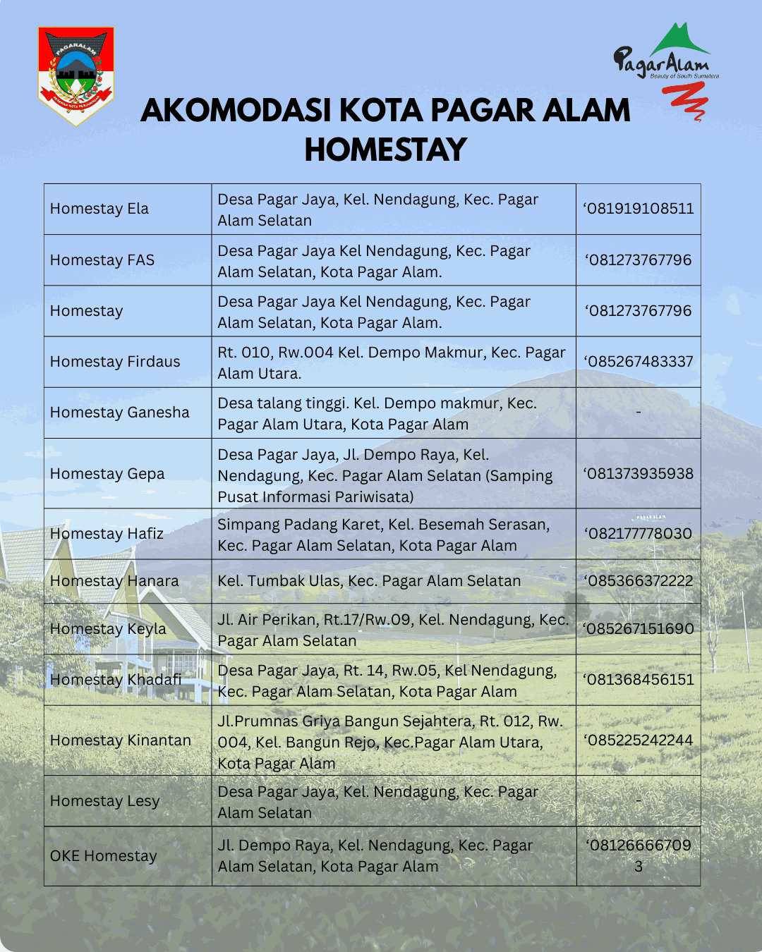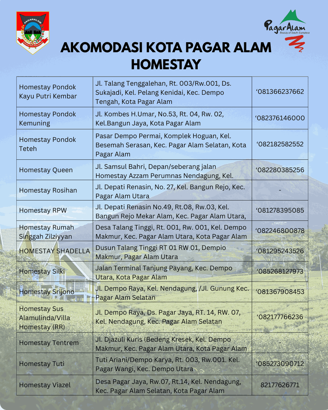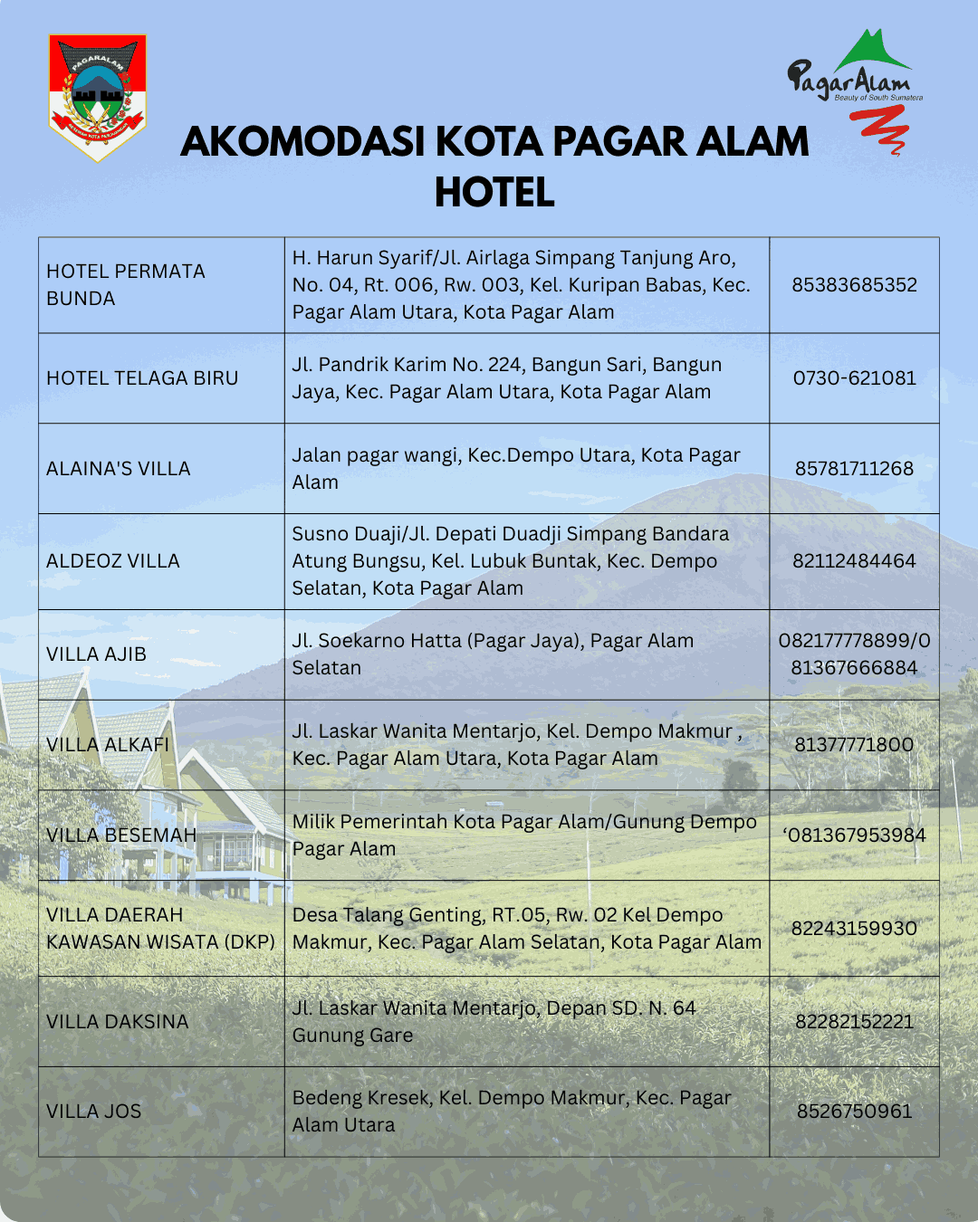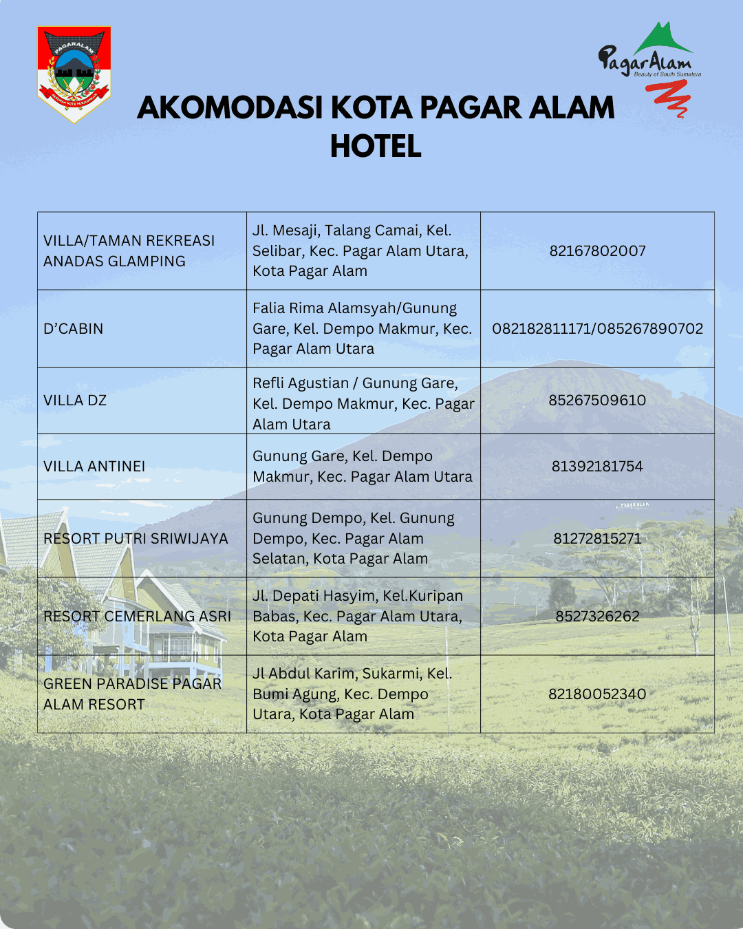 “Selamat Datang di Kota Pagar Alam,nikmati sejuknya udara dan dinginnya air di kota Perjuangan”