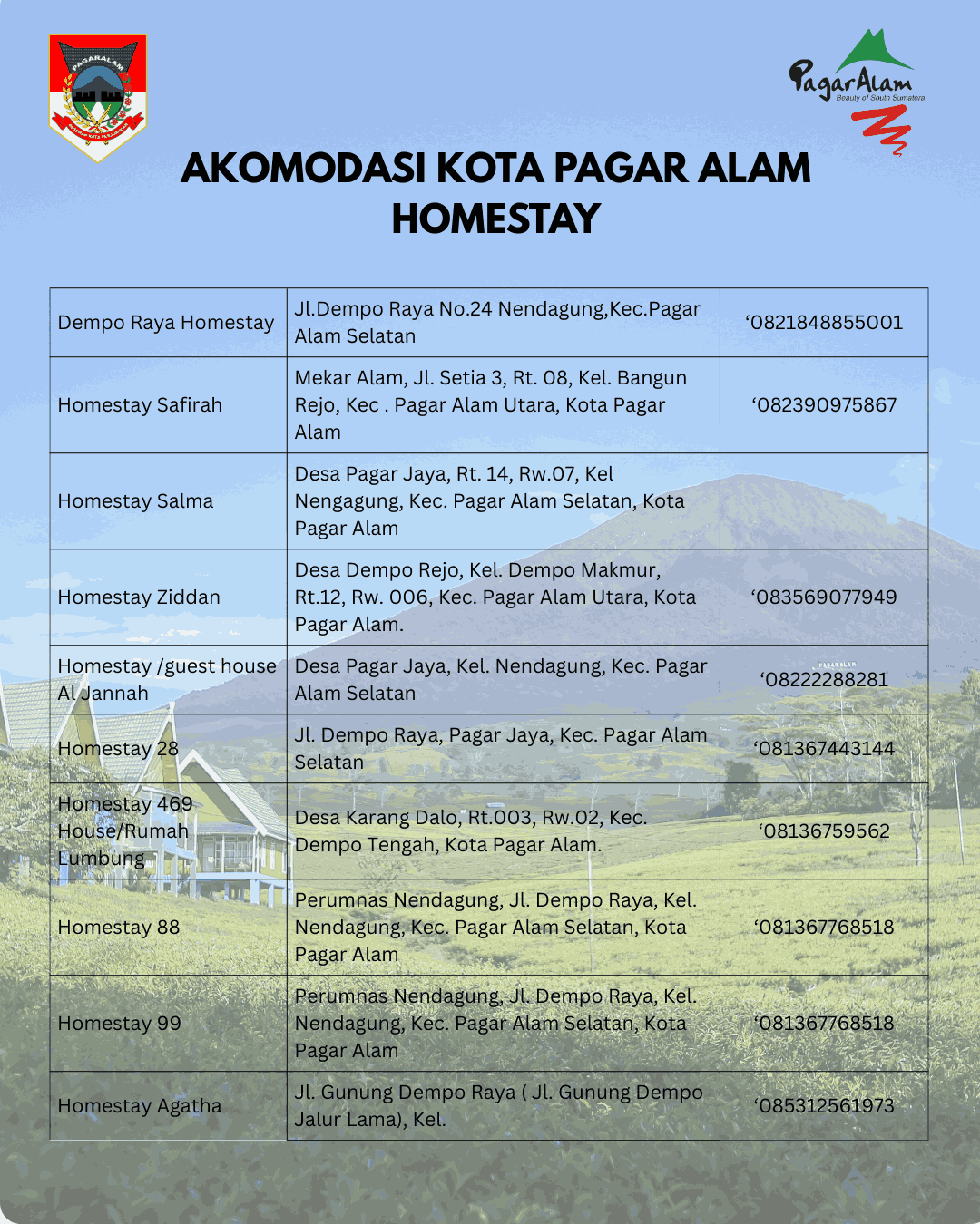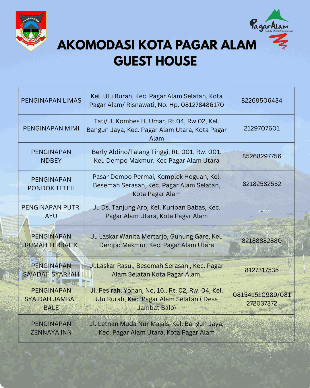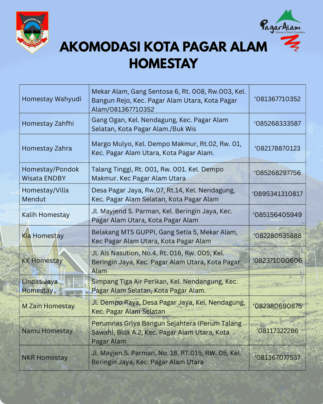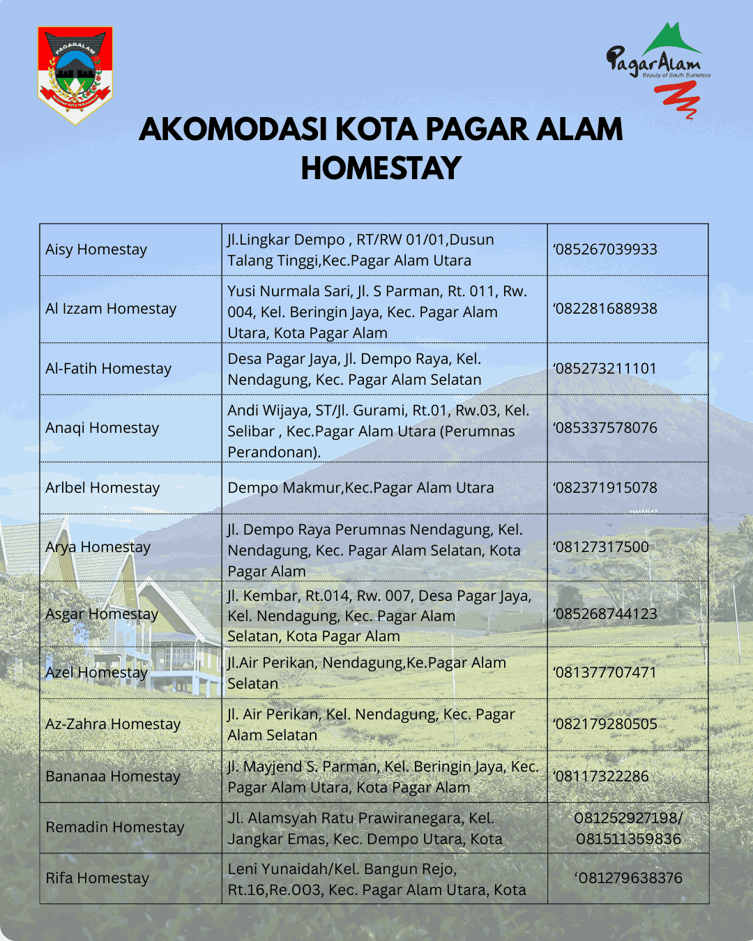“Selamat Datang di Kota Pagar Alam,nikmati sejuknya udara dan dinginnya air di kota Perjuangan”
